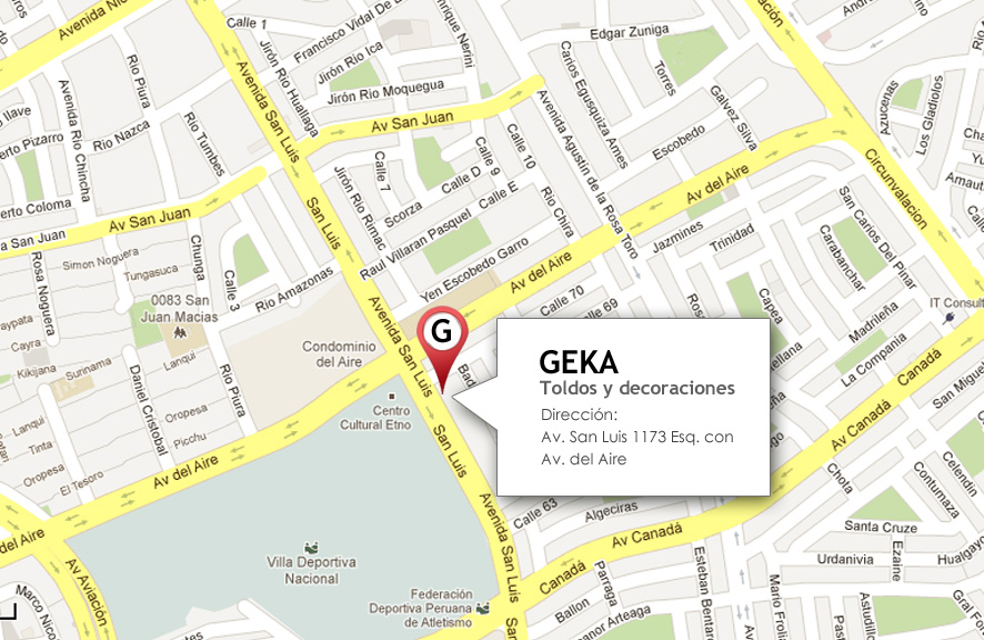 Telefono: (01)346-4358 RPC: 993433353 RPM: #948445309 Movistar: 945293441 Correo: karina@toldosydecoraciones.com Dirección: Av. San Luis 1173 a 20 metros de la Av. Del Aire